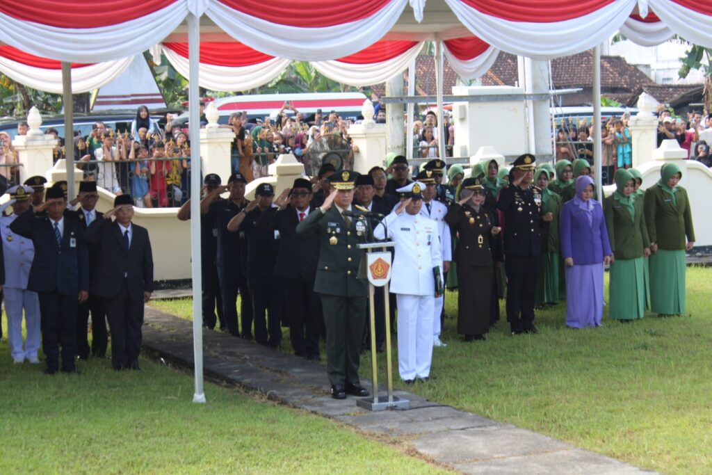Selanjutnya, upacara dimulai pukul 09.00 WIB. Asrenum Panglima TNI Letjen Candra Wijaya bertindak sebagai inspektur upacara. Forkopimda Kulon Progo, keluarga, serta masyarakat turut hadir memberi penghormatan terakhir.