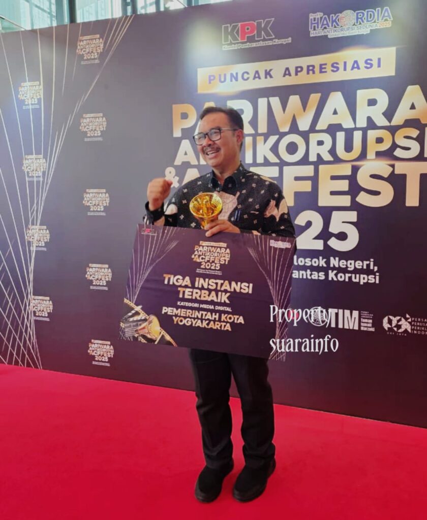 Jakarta,suarainfo.com-Pemkot Yogyakarta meraih penghargaan tiga instansi terbaik kategori media digital dalam ACFFEST 2025 berkat kampanye satir edukatif “Uang Semir”. KPK RI menyerahkan penghargaan ini secara langsung kepada Wali Kota Yogyakarta, Hasto Wardoyo, pada malam puncak di (TIM) Jakarta, Kamis,(27/11/2025).