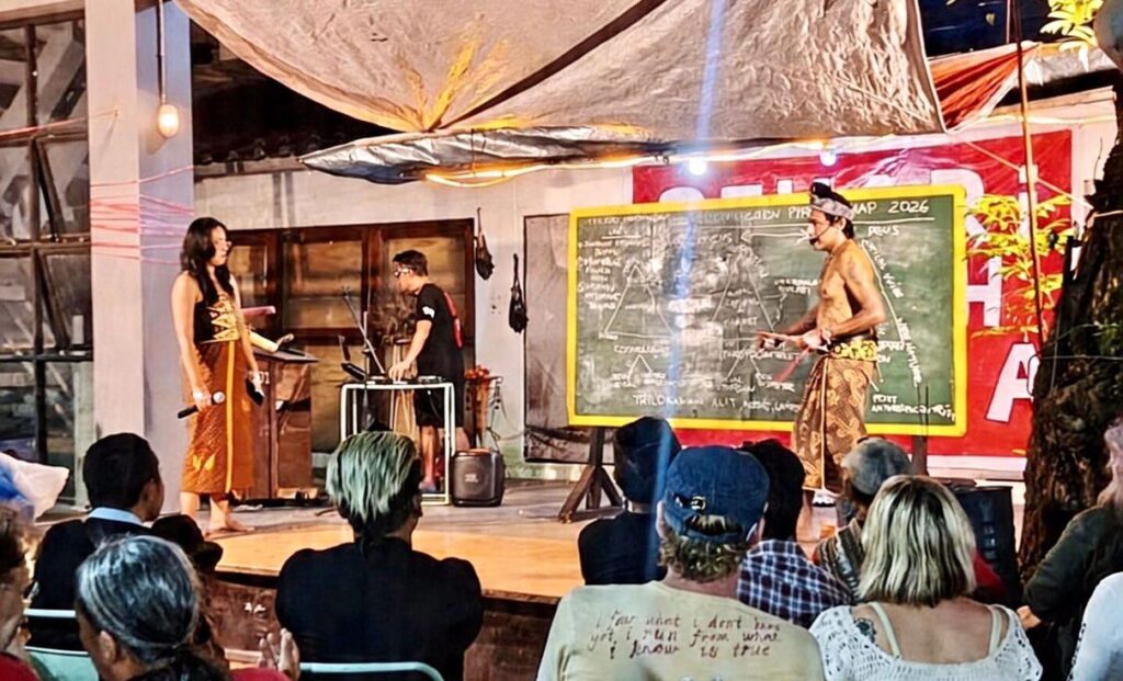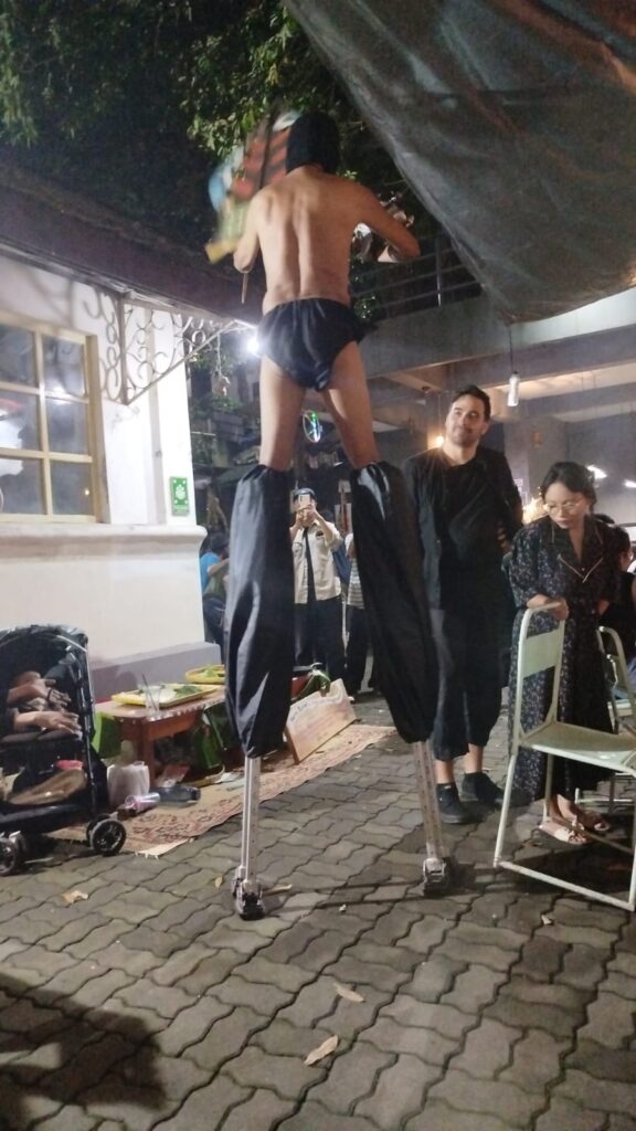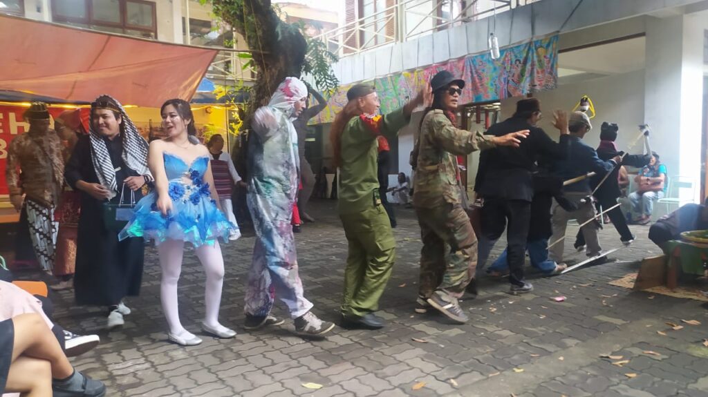Suasana terasa cair. Bunyi wajan, musik alternatif, hingga pembacaan puisi teatrikal bercampur.