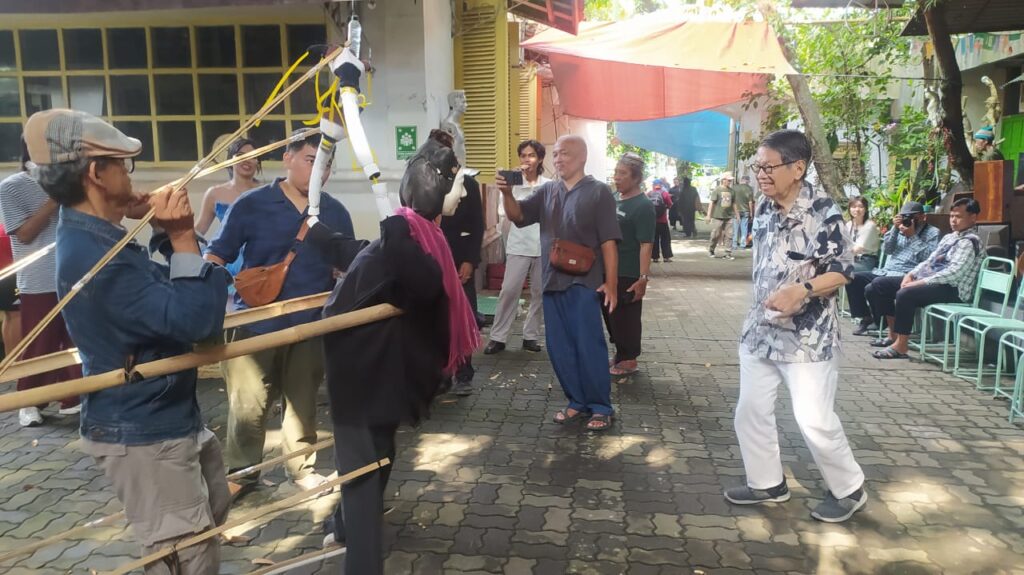 Dr. Oei Hong Djien tidak hanya berbicara. Ia bermain biola. Ia juga berjoget bersama seniman lain.